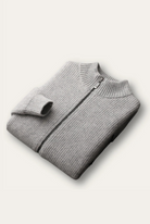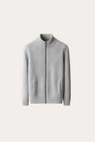 Made from 100% pure wool, designed to offer warmth and understated style. The rib-knit texture gives the cardigan a clean and structured look, while the high neckline and full-zip closure add both functionality and a contemporary edge. Subtle front pockets blend seamlessly into the design, making it as practical as it is timeless.